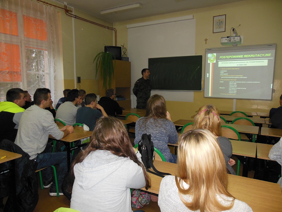 Młodzież miała okazję zapoznać się z aktualnymi i bardzo pomocnymi w planowaniu dalszej drogi edukacji informacjami na tematy związane z wojskiem, kształceniem, przebiegiem służby, czyli dowiedziała się o formach, kryteriach