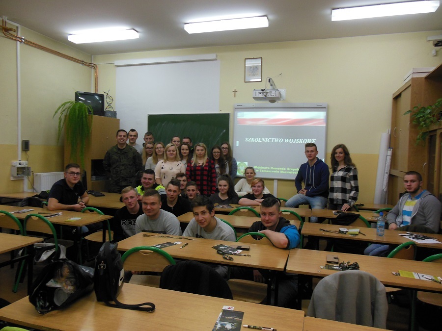 06.12.2017 r. odbyło sie spotkanie klas IV z przedstawicielem Wojskowej Komendy Uzupełnień w Tomaszowie Maz. podporucznikiem Przemysławem Stemplewskim.
