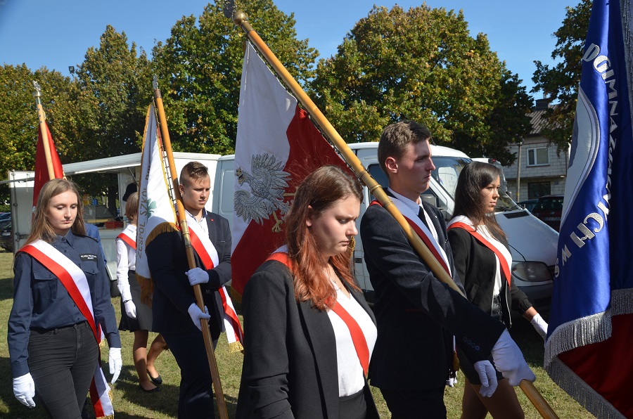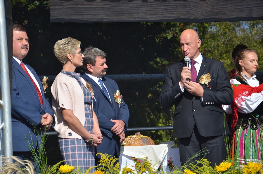 Po mszy świętej barwny korowód ruszył na stadion sportowy, gdzie tegoroczna para starostów dożynkowych przekazała Staroście Powiatu Piotrkowskiego Stanisławowi Cubale bochen chleba wypieczony z mąki z tegorocznych zbiorów zboża.