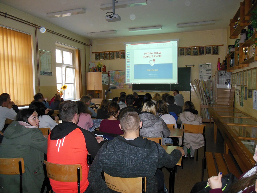 Celem prelekcji było propagowanie idei honorowego krwiodawstwa oraz uwrażliwienie młodych ludzi na potrzeby osób chorych, dla których krew jest bezcennym lekiem.