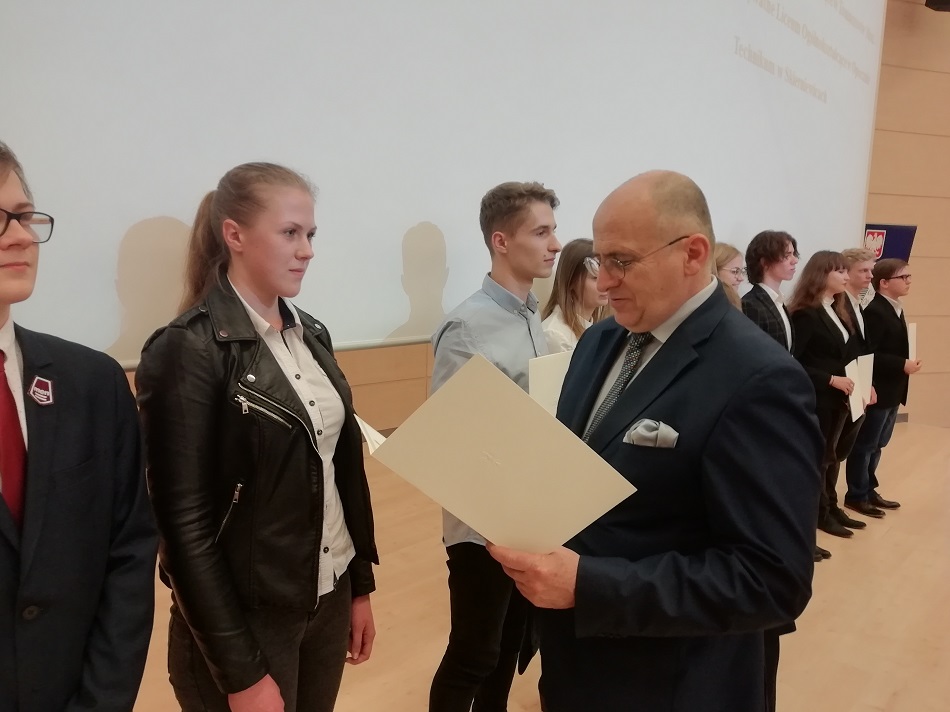 W dniu 13 marca 2019 r. nasza uczennica klasy IV technikum- Kinga Szwedowska odebrała z rąk Wojewody Łódzkiego dyplom stypendysty Prezesa Rady Ministrów.