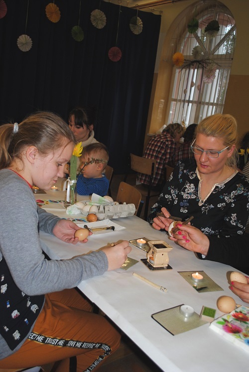 W zajęciach, które miały charakter integracji międzypokoleniowej wzięło udział 40 osób. Wszyscy pod czujnym okiem twórczyni ludowej uczyli się „pisać” jaja woskiem, farbować je i zdejmować wosk, tworząc oryginalne wzory.