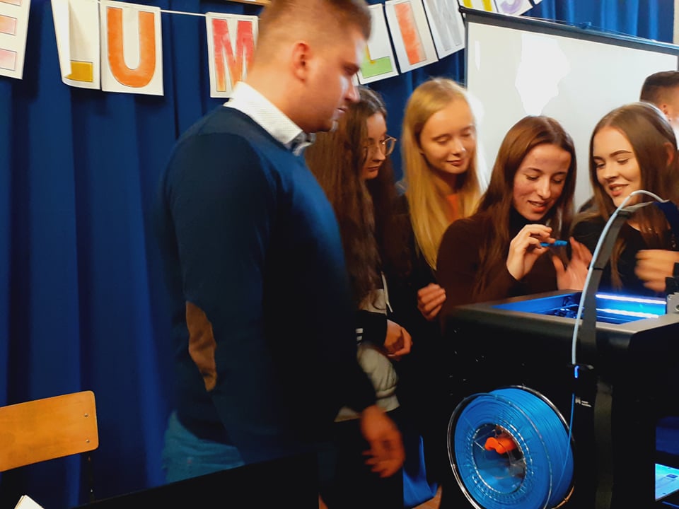 Celem spotkania było poznanie firmy szkoleniowej, która zajmuje się szeroko rozumianą edukacją człowieka oraz prezentacją działania drukarki „3D”.