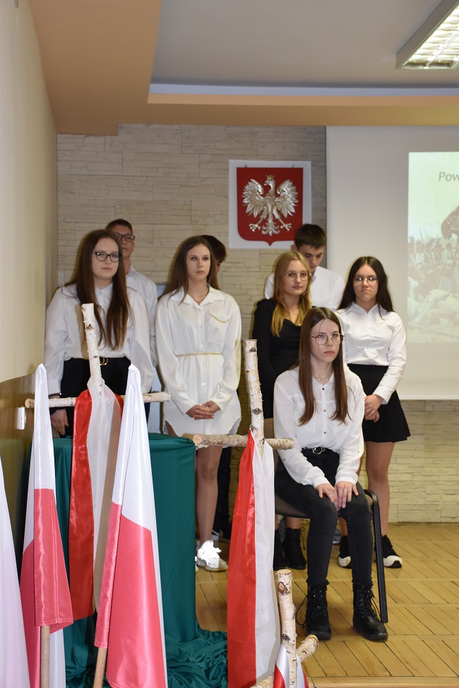 Młodzież przedstawiła montaż słowno–muzyczny pt. „ Na stos rzuciliśmy nasz życia los…”, który przypomniał okoliczności, jakie miały wpływ na odzyskanie przez Polskę niepodległości.