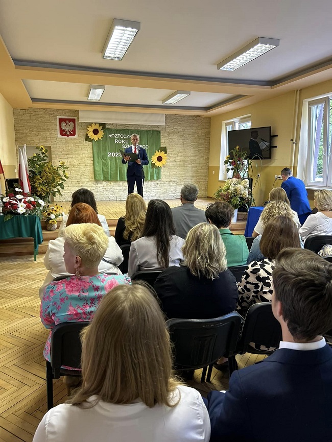Dyrektor szkoły, pan Maciej Stachaczyk, wraz z zaproszonymi gośćmi w osobach pana Dariusza Magacza Wicestarosty  Powiatu Piotrkowskiego i pani Anety Stawianej Kosiorek, zastępcy Wójta Gminy Czarnocin, zainagurowali uroczyście nowy rok szkolny 2023/2024. Jest to szczególny rok w historii naszej placówki z powodu obchodów jubileuszu 100-lecia szkoły, który zaplanowano na 15.06.2024  r.