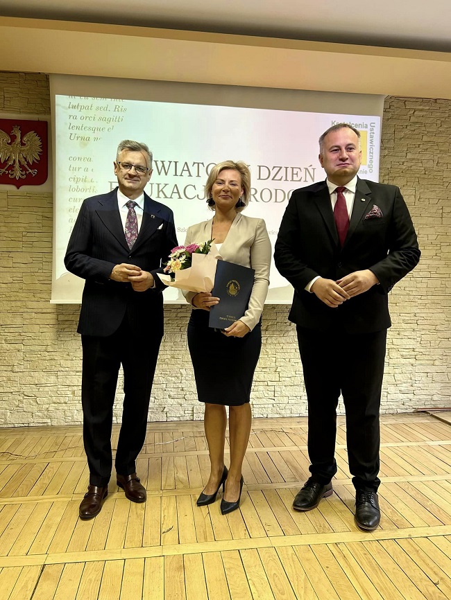 Podczas Powiatowego Święta Edukacji nagrodzono dyrektorów i pedagogów, którzy swoją pracą i zaangażowaniem szczególnie zasłużyli na wyróżnienie. W gronie nagrodzonych jest nasz nauczyciel Pani Anna Kędziora.